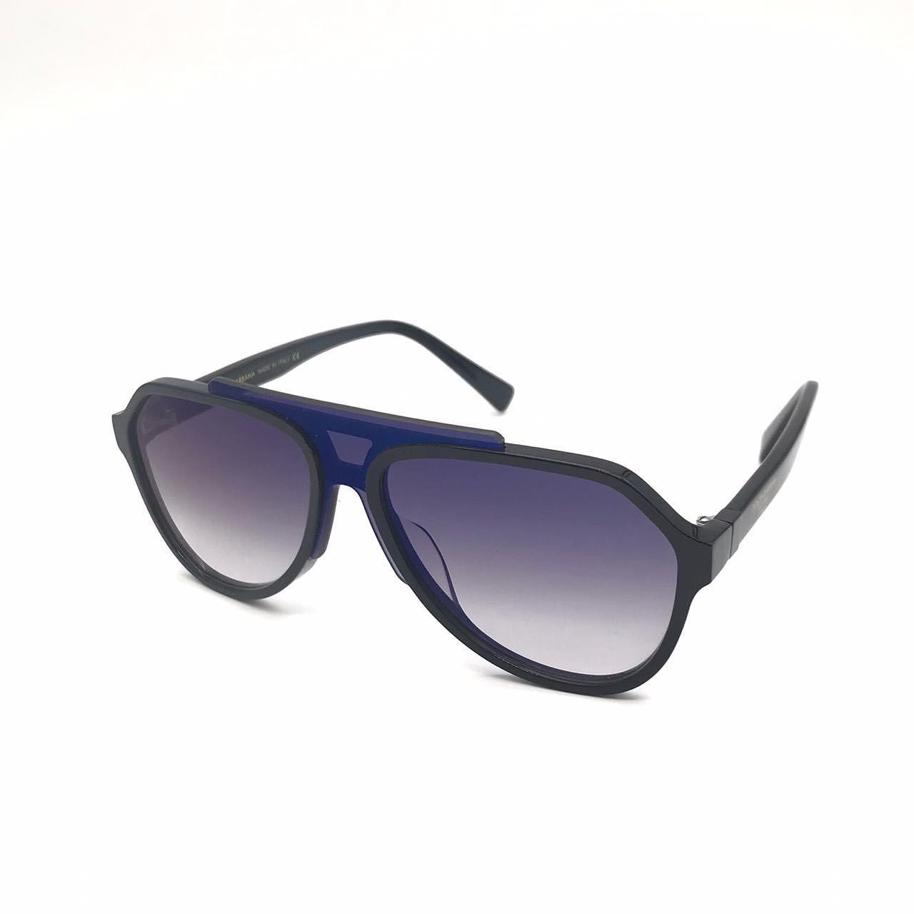 Очки Dolce & Gabbana LUX-42838 представляют собой стильный аксессуар с современным дизайном. Форма авиатор сочетается с массивной черной оправой и контрастной синей деталью, добавляя образу выразительности. Градиентные линзы от темного фиолетового до светло-серого обеспечивают комфортное зрение и защиту от солнца, делая их идеальным выбором для повседневного использования.