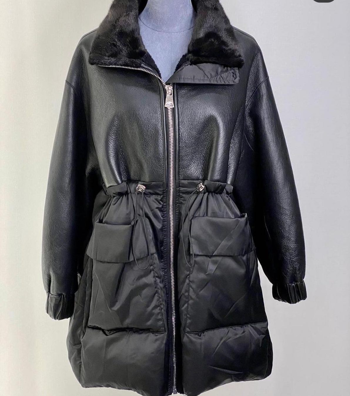 Это стильное пальто LUX-40420 от бренда Luxe Crime сочетает в себе элегантность и современный дизайн, делая его идеальным выбором для прохладной погоды. Сочетание гладкой эко-кожи и объемного утеплителя создает уникальный силуэт, дополненный меховым воротником. Модель с центральной молнией и регулируемым поясом-кулиской подчеркивает талию, придавая образу женственности.
