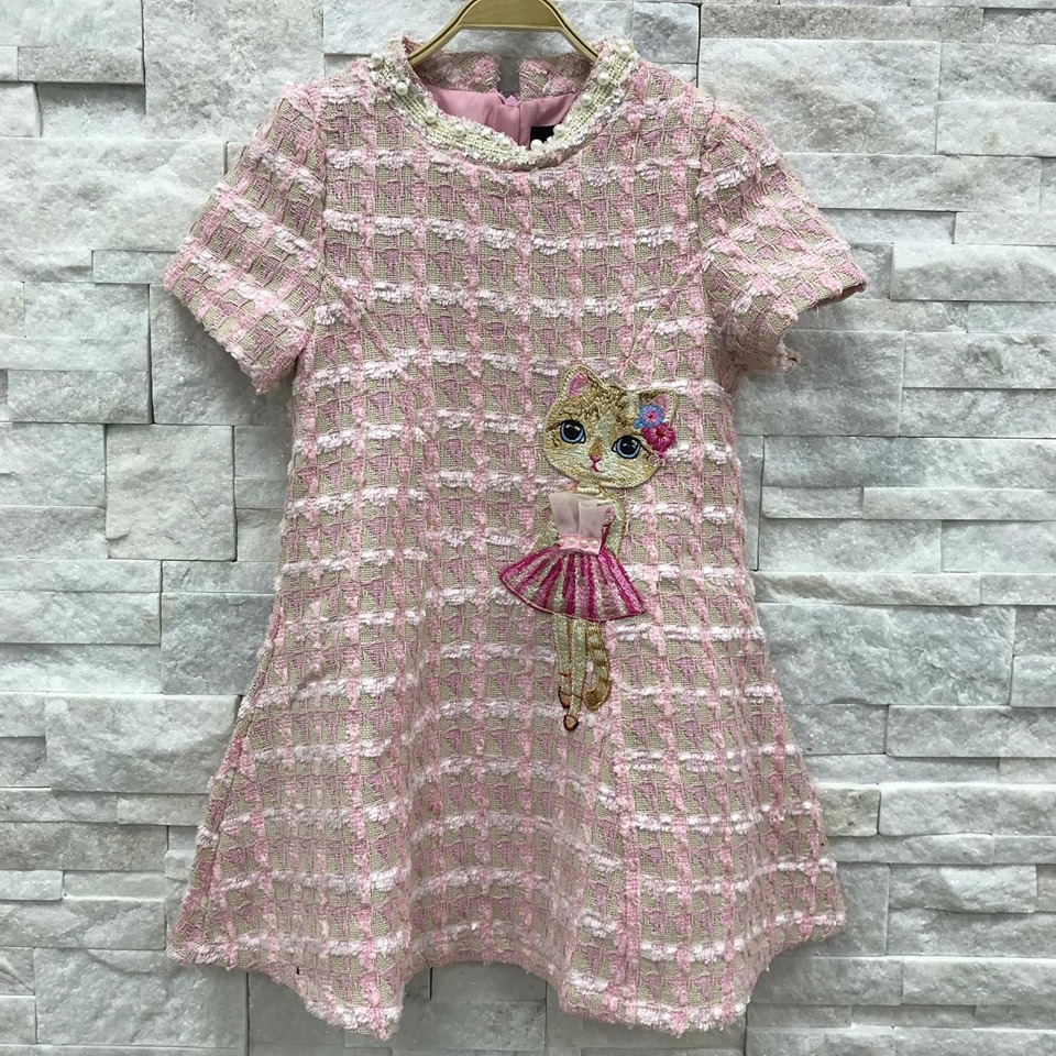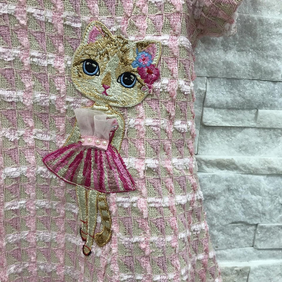 Это очаровательное платье от LUX-CRIME, артикул LUX-20403, выполнено в игривом стиле, идеально подходящем для юных модниц. Розово-бежевый твидовый узор создает уютную текстуру, а вышивка милого котенка в балетной пачке добавляет образу нежности и сказочности. Круглый вырез горловины украшен мелкими жемчужинами, придавая платью элегантный акцент.