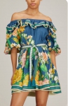 Платье Alemais LUX-91025 – это яркое летнее платье с цветочным принтом. Модель выполнена в стиле бохо, отличается открытыми плечами и пышными рукавами. Платье украшено поясом на талии и оборками, что придает ему женственности и легкости.