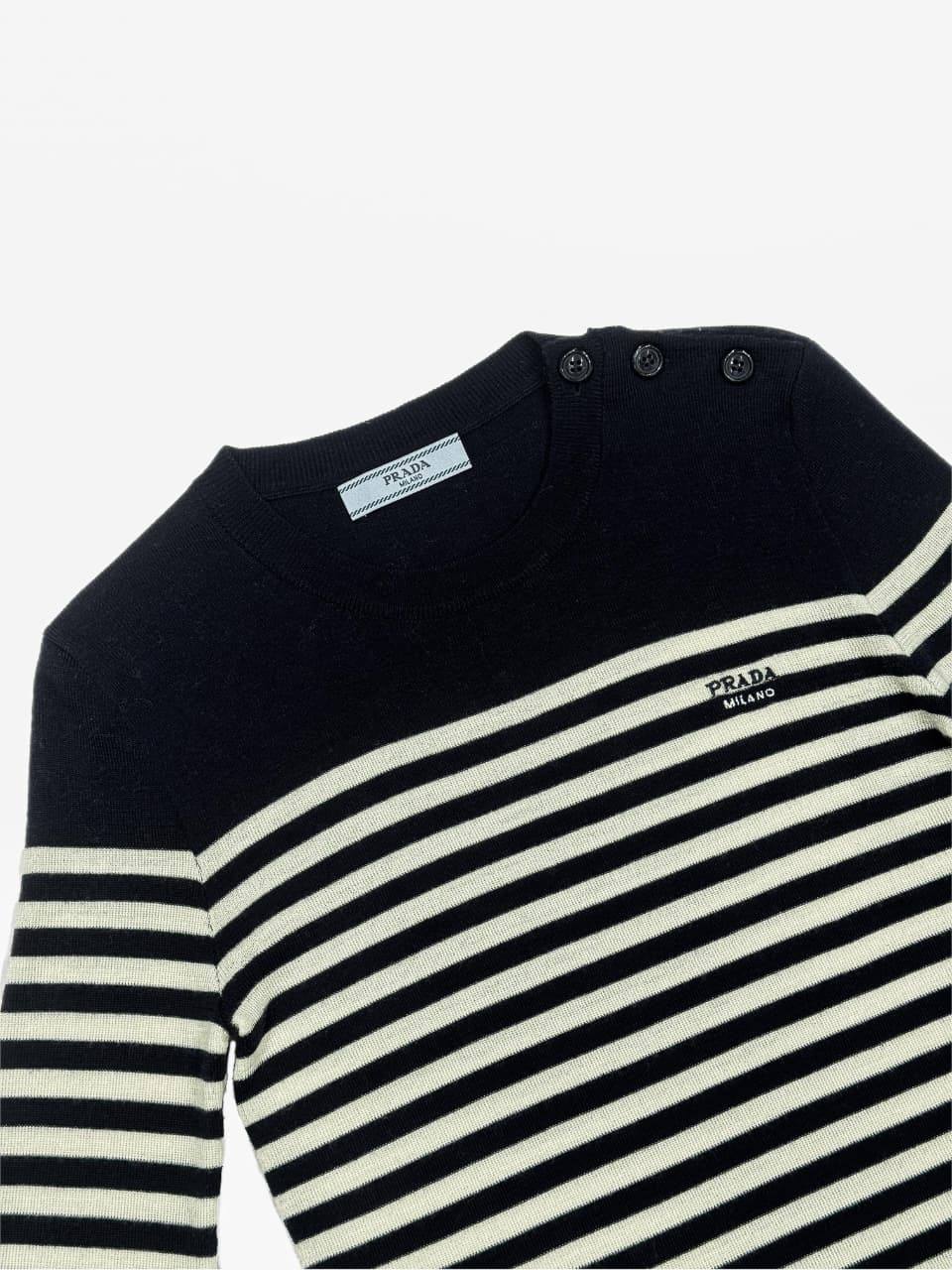 Этот стильный свитер Prada идеально подходит для создания элегантного и непринужденного образа. Он выделяется своим морским дизайном и высоким качеством исполнения.
