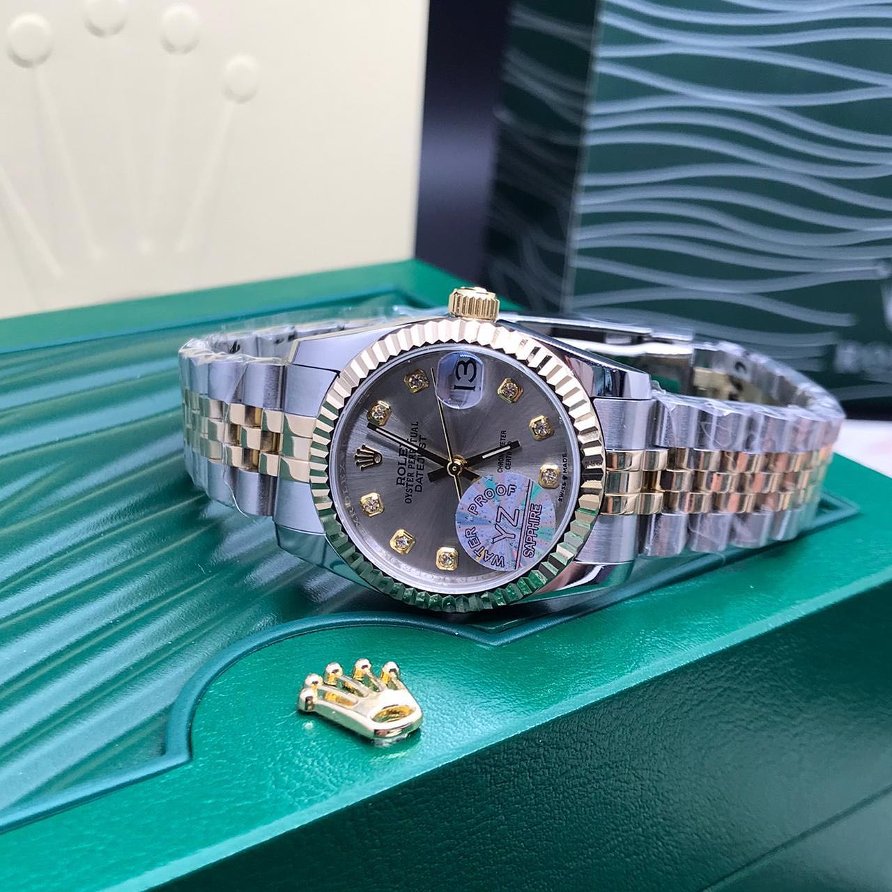 Корпус сталь 31мм, механика с автоподзаводом, стекло сапфир сдерживает мелкие царапины, камни цирконы.