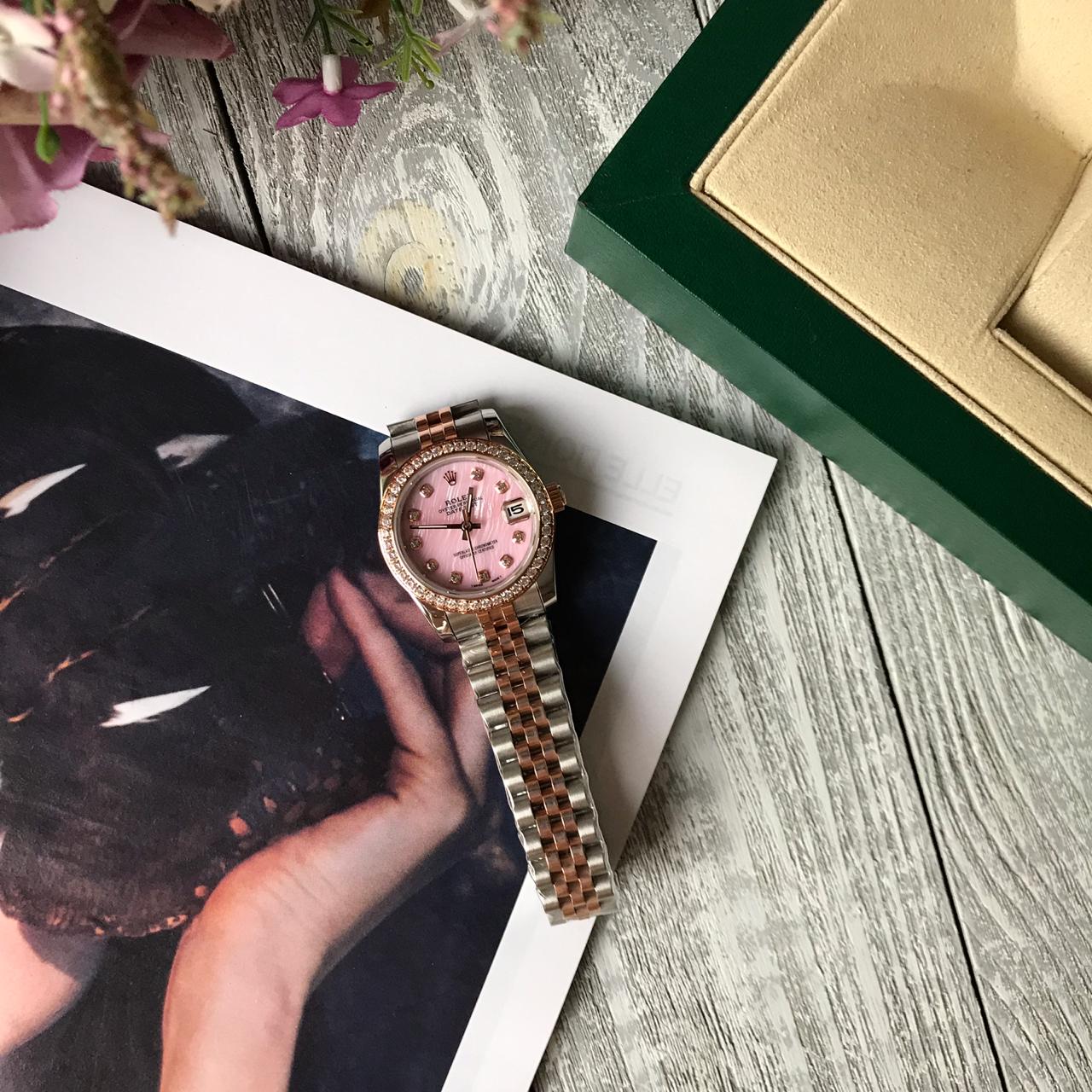 Корпус сталь 31мм, камни цирконы, механика с автоподзаводом, стекло сапфир сдерживает мелкие царапины, циферблат перламутр. Качество 1:1 к оригиналу.