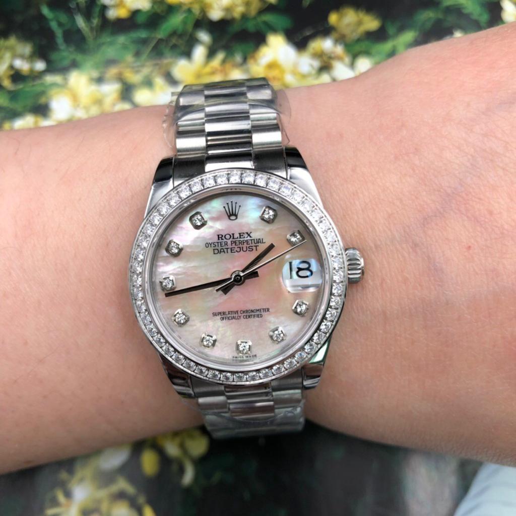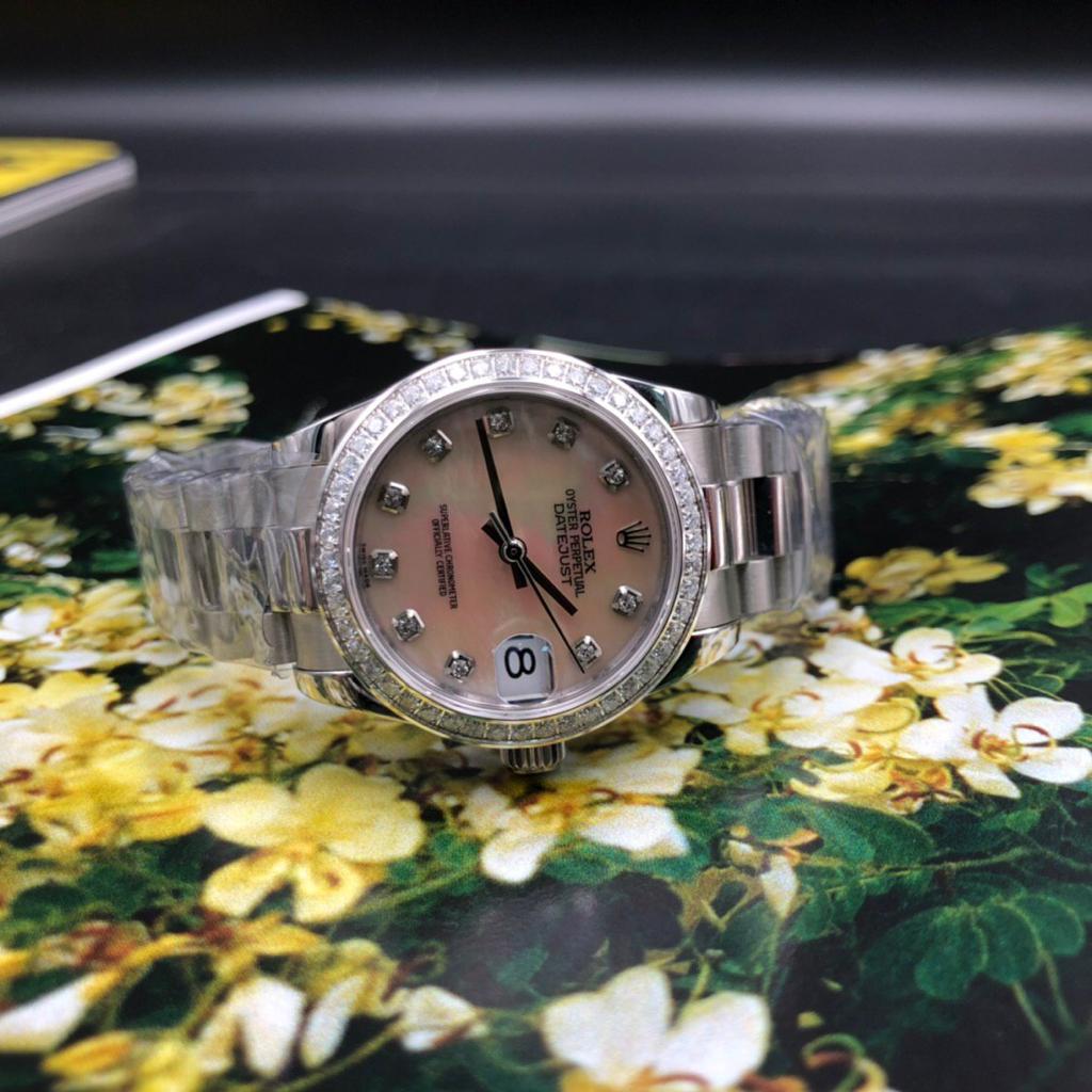 Характеристики: Корпус-Часовая сталь 904L Механизм- Автоматический (механика с автоподзаводом) Калибр- ETA Swiss 2836 Стекло-Сапфировое Браслет-Часовая сталь Застёжка-Клипсовая Ювелирная инкрустация цирконами Перламутровый циферблат Очень редкий и эксклюзивный диаметр Диаметр- 31 мм Качество 1:1 к оригиналу.
