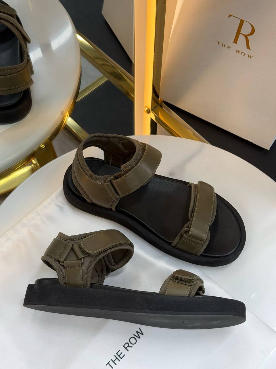 Сандалии The Row LUX-117891 — это стильные сандалии, которые сочетают в себе современный дизайн и комфорт. Обувь выполнена в хаки цвете, с черной подошвой, что делает их универсальными и подходящими для разных образов. Сандалии отлично подойдут для повседневной носки, обеспечивая комфорт в течение всего дня.