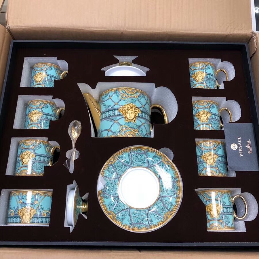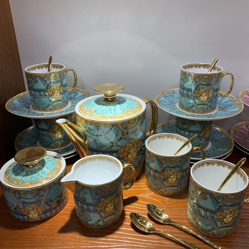 В сервизе чайник, сахарница, сливочник, 6 чашек, 6 блюдец и 6 ложек. Качество 1:1 к оригиналу.
