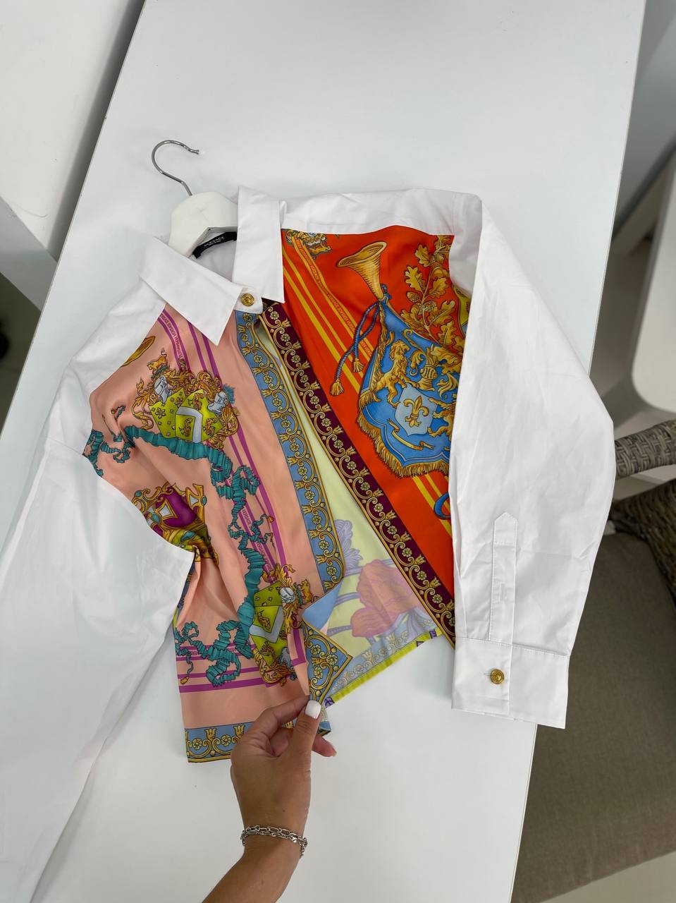Рубашка Versace LUX-67950 – это стильный и элегантный элемент гардероба, сочетающий в себе классический крой и яркий, запоминающийся дизайн. Идеально подойдет для создания модных образов.